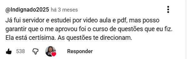 Em vez de começar pela teoria, você aprende o conteúdo resolvendo questões e revisando o que realmente cai nas provas.